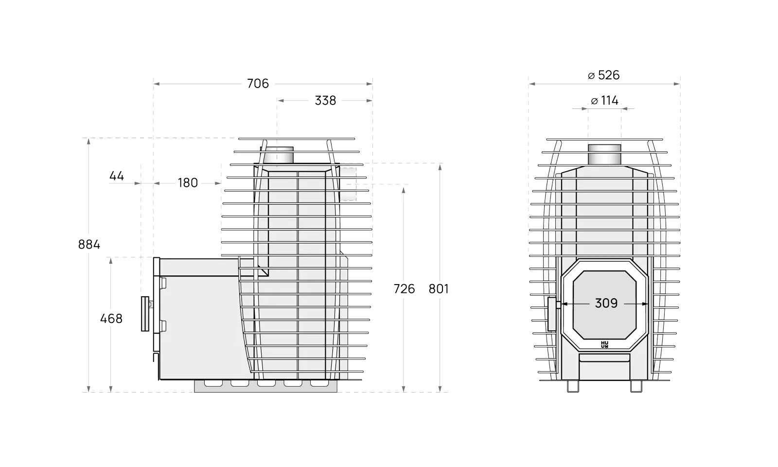 Also available as HIVE Flow Mini and Mini LS. Weighing 54 and 59 kg respectively and holding 105 kg of stones. With the stone cage you can add up to 40 kg of stones.