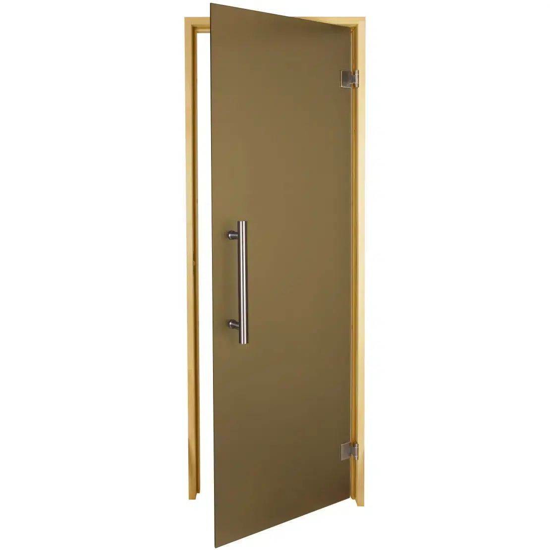 Elevate your sauna experience with our high-quality TESLI STEEL Sauna Glass Door, available for sale in Canada and the USA. These sauna doors are crafted from 8 mm (5/16″) tempered glass, ensuring both durability and safety while providing a sleek, modern look. The glass is tinted with a bronze shade, offering a touch of elegance while maintaining transparency.